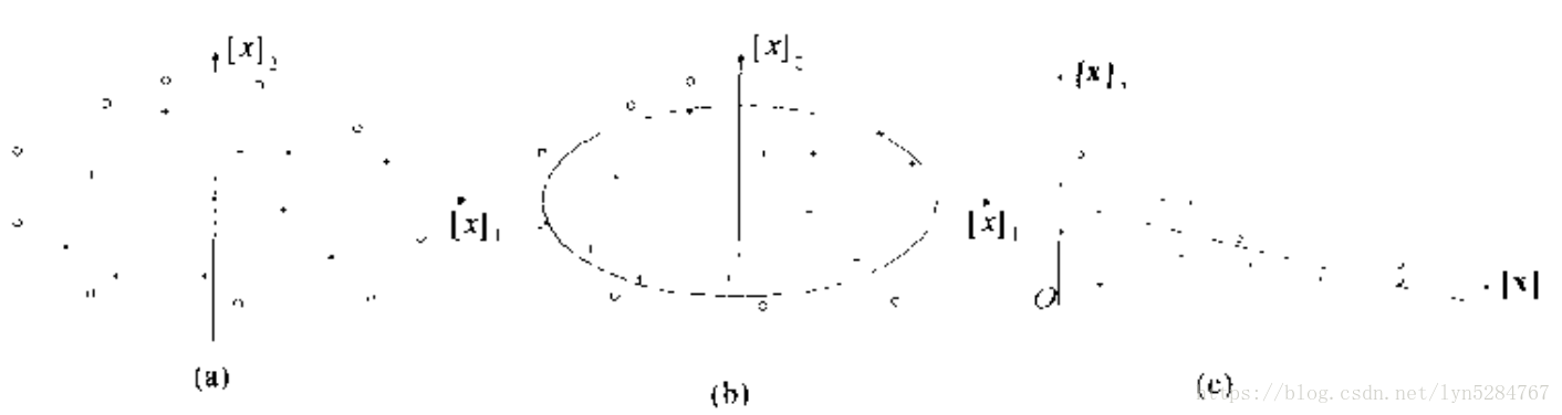对图(a)进行分类,我们无法进行线性分类,但是可以用一个椭圆来划分: