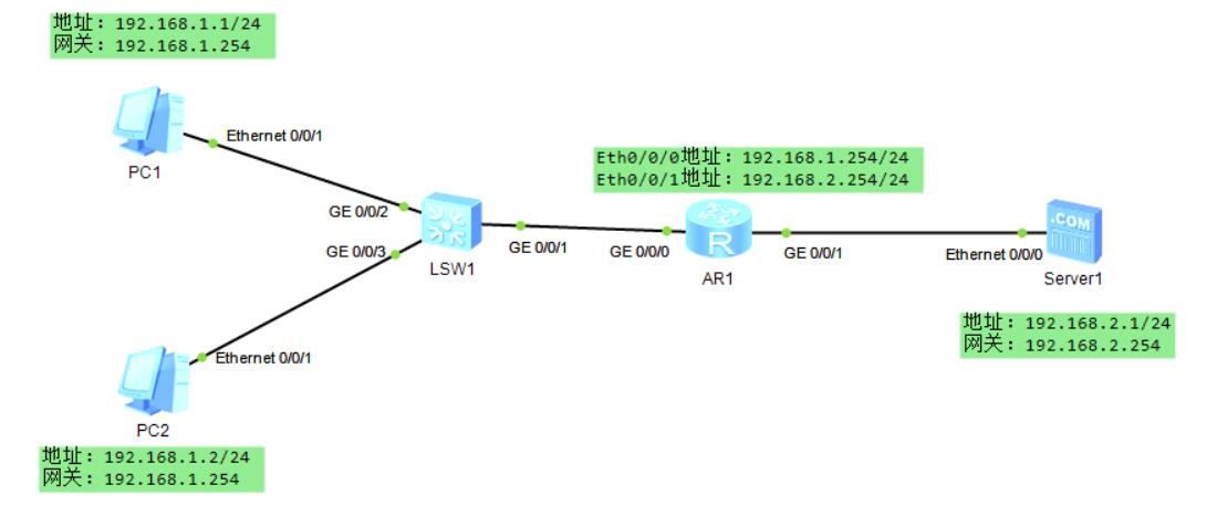 [Huawei-GigabitEthernet0/0/1] ip address 192.168.2.254 255.255.255.0