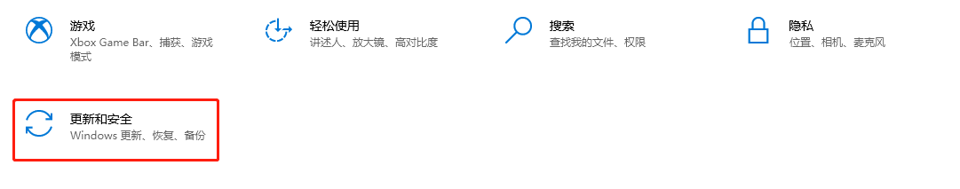 1.修改系统设置,在设置中点击进入“更新和安全”