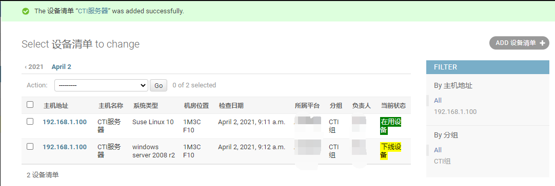 list_display = ("HostAddr","HostName","HostType","HostPosition","HostDataTime","HostPlatform","HostGroup","HostUser","Status")