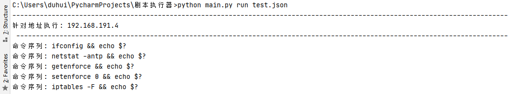 - 程序会在Json文件中解析参数,并将参数与所对应的主机进行关联,对不同的主机组执行不同的命令,实现批量脚本执行。