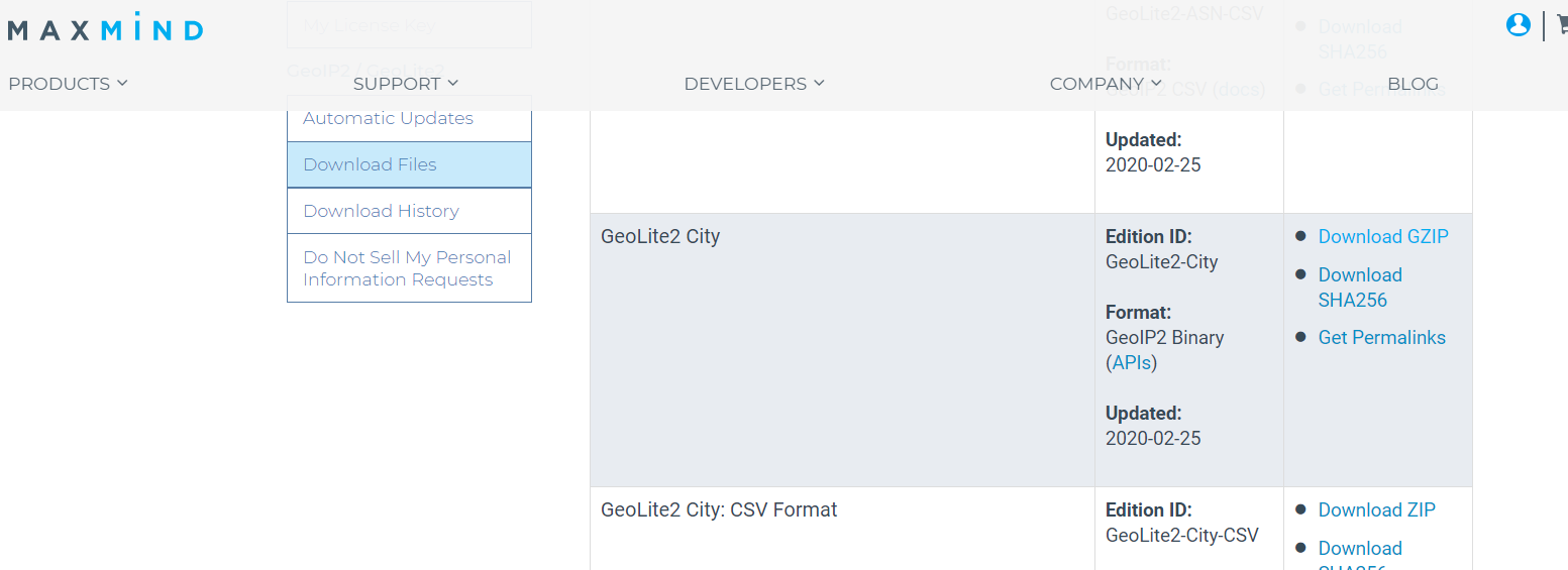 下载需要注册用户,然后下载离线数据库:https://www.maxmind.com/en/accounts/current/geoip/downloads