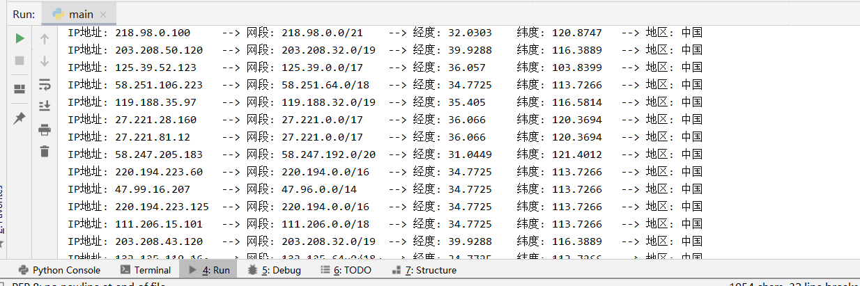 print("经度: %-10s 纬度: %-10s --> " %(response.location.latitude, response.location.longitude),end="")