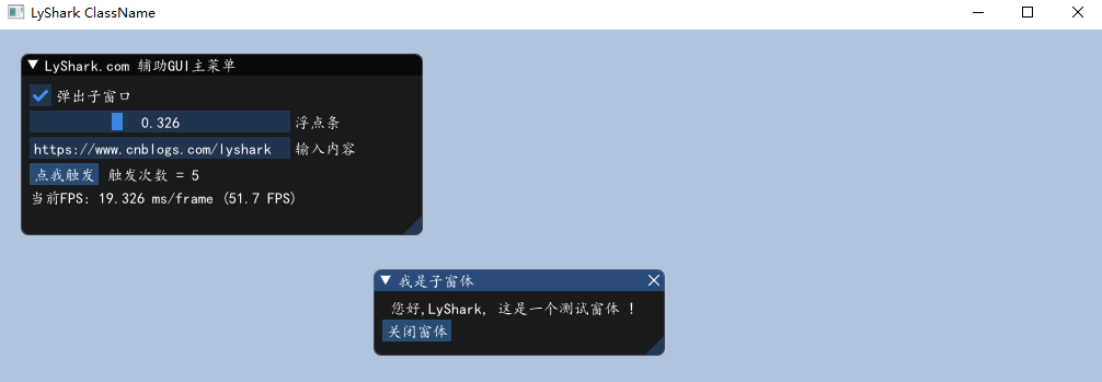 ImGui::Text(" 您好,LyShark, 这是一个测试窗体 !");
