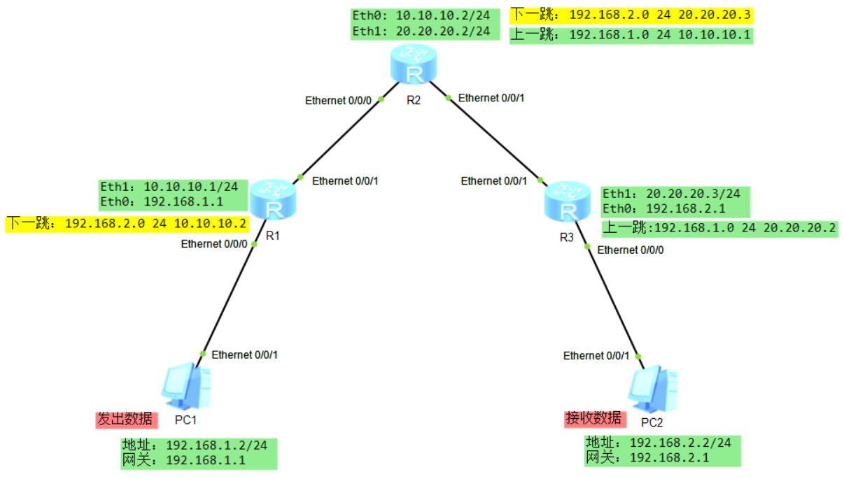 静态路由需要管理员根据实际需求一条条自己手动配置,路由器不会自动生成所需的静态路由,静态路由中包括目标节点或目标网络的IP地址,还可以包括下一跳IP地址,以及在本路由器上使用该静态路由时的数据包出接口等,但是手动配置静态路由需要管理员非常了解网络的拓扑结构才能够完成配置,在网络规模较大时还需要耗费大量的经历和时间去维护,所以并不是所有的网络都适合配置静态路由.