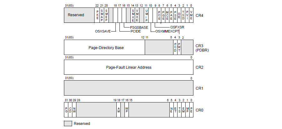 如下图是完整的CR0寄存器,以及重要寄存器解释: