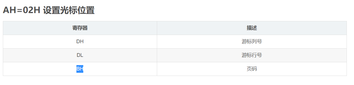 mov dh,0x0 ; 设置光标列号 左上角(0,0)