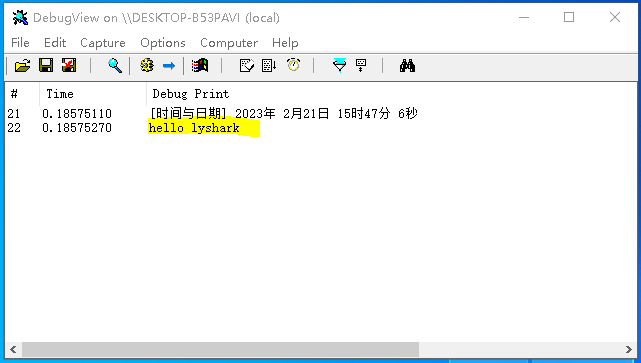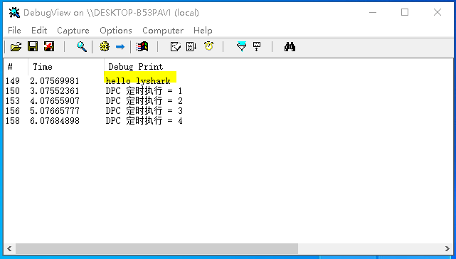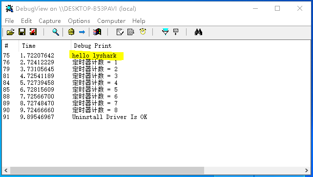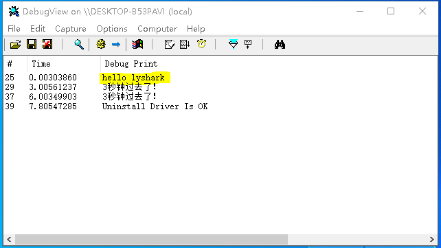 DbgPrint("[LyShark] 三秒过去了 \n");