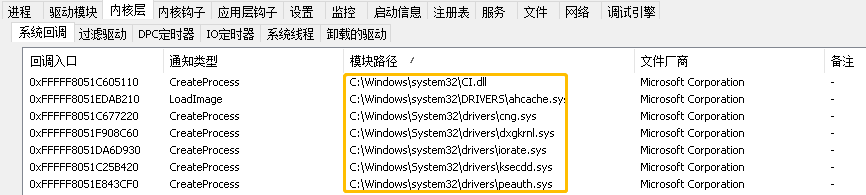 在前几篇文章中LyShark通过多种方式实现了驱动程序与应用层之间的通信,这其中就包括了通过运用SystemBuf缓冲区通信,运用ReadFile读写通信,运用PIPE管道通信,以及运用ASYNC反向通信,这些通信方式在应对一收一发模式的时候效率极高,但往往我们需要实现一次性吐出多种数据,例如ARK工具中当我们枚举内核模块时,往往应用层例程中可以返回几条甚至是几十条结果,如下案例所示,这对于开发一款ARK反内核工具是必须要有的功能。