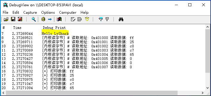 DbgPrint("Hello LyShark \n");