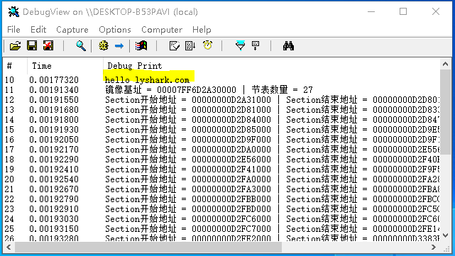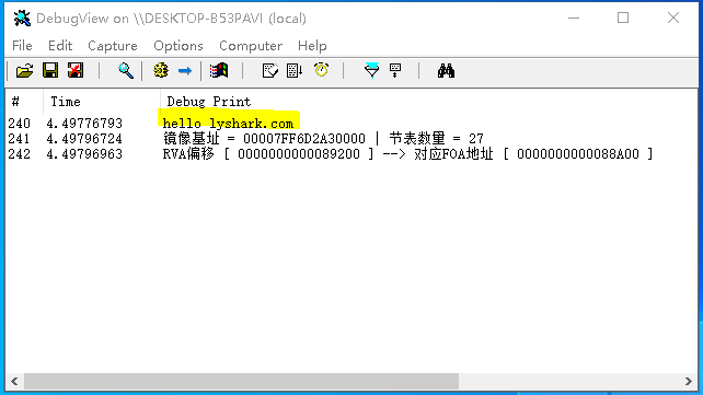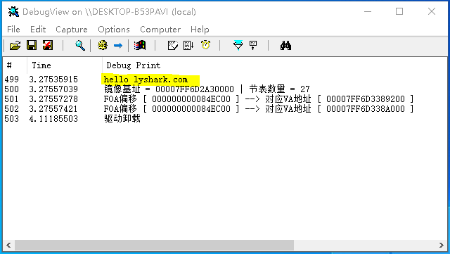 DbgPrint("hello lyshark.com \n");