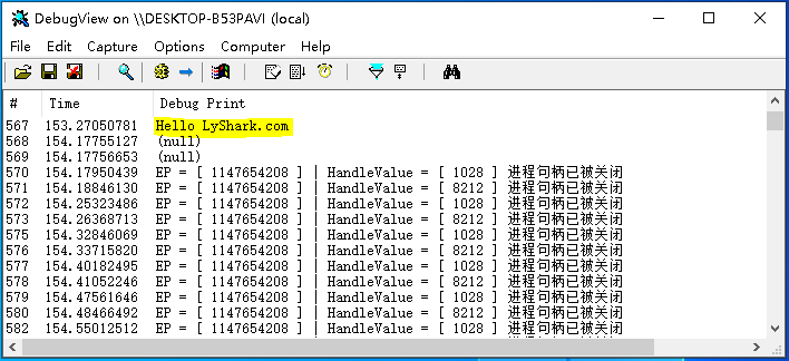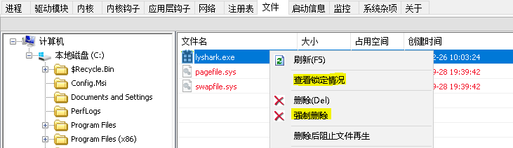 编译并运行如上程序,则会分别将c://lyshark.exe以及驱动程序自身删除,并输出如下图所示的提示信息;