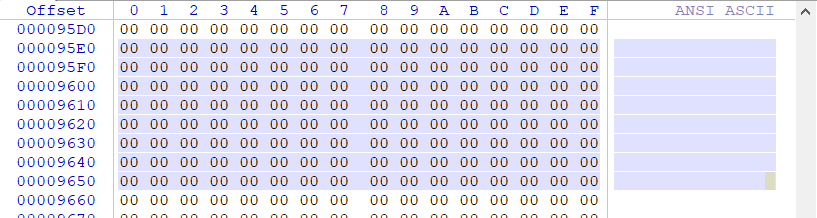 通过计算可得知,导入表位置对应到文件中的位置是0x95E0,我们直接跟随过去但此时你会惊奇的发现这里全部都是0,这是因为Windows装载器在加载时会动态的获取第三方函数的地址并自动的填充到这些位置处,我们并没有运行EXE文件所以也就不会填充,为了方便演示,我们将程序拖入x64dbg让其运行起来,然后来看一个重要的结构。