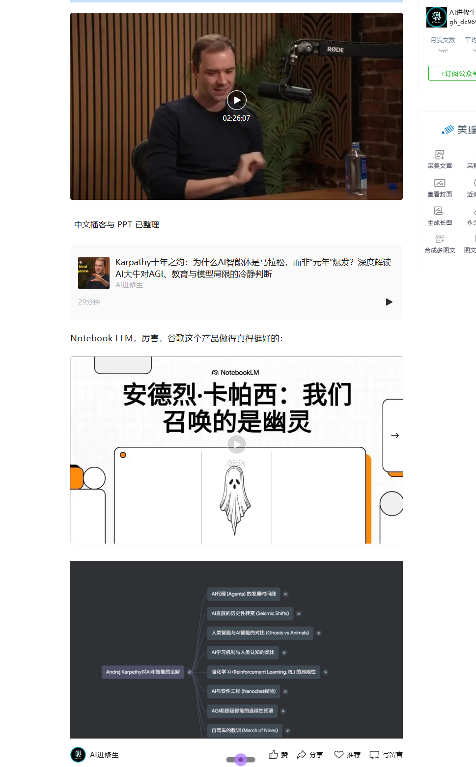好的思想,难得。对于我来说,这些,不仅是思想的启迪、对模型能力边界的认知。也是我给大模型的绝佳上下文材料、一些提示词的灵感。