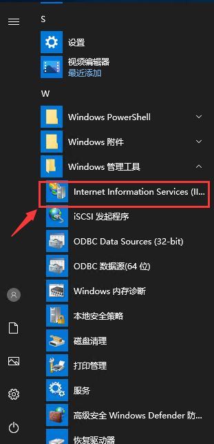 3,操作完成后就开始菜单中找到 Internet Information Services 了。
