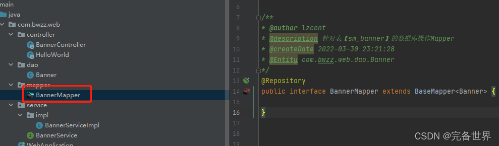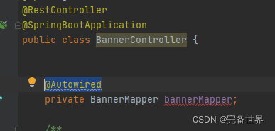 其实只需要去我们的BannerMapper ,方法上加入:@Repositary,如下图