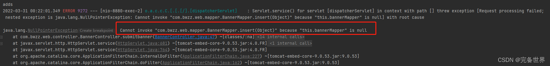 发现在,private BannerMapper bannerMapper,需要加入注解: