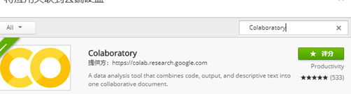 第一次需要关联Colaboratory: 更多 → 关联更多应用 → 搜索Colaboratory,