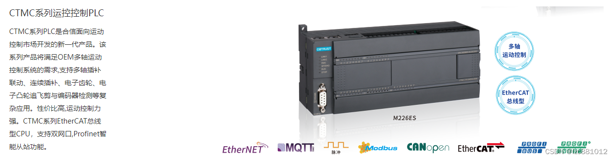 | 运控功能 | ⽀持多轴多路直线/圆弧插补、连续插补、电⼦凸轮和追⻜剪功能;⽀持单轴运控(如定位、速度和回原等)功能。⽀持PLCopen标准指令库 | ||||||||||||||