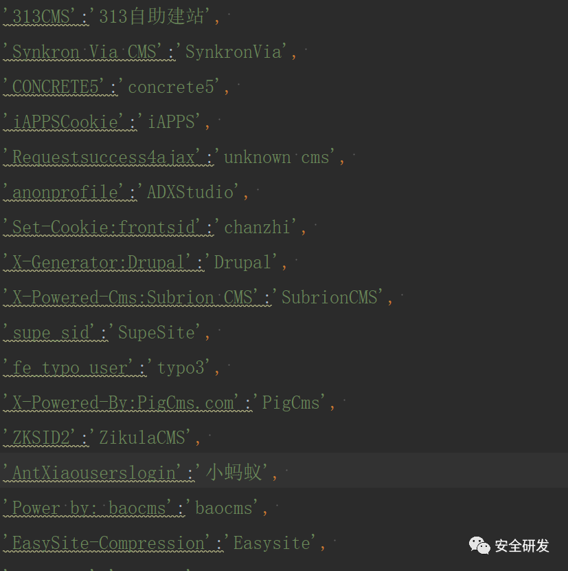 那么只需要准备一个指纹库,然后访问目标网站后,对照指纹库的内容,如果命中关键词,则直接判断该网址的CMS类型。