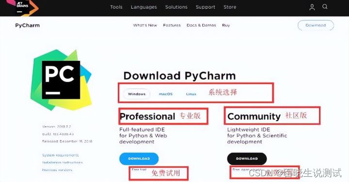 笔者使用PyCharm2018.3.2,请根据机器是64位还是32位来选择对应的PyCharm版本。(相信绝大部分人都可以很从容的来查看自己机器的位数,在这里就不赘述了,如果不清楚自己可以百度一下就可以)