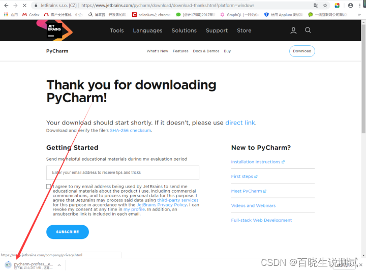 可以去PyCharm官网:https://www.jetbrains.com下载对应机器的安装包。
