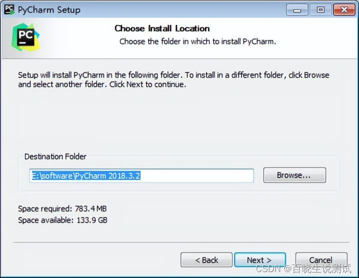 第三步:选择安装目录,Pycharm需要的内存较多,建议将其安装在D盘或者E盘,不建议放在系统盘C盘: