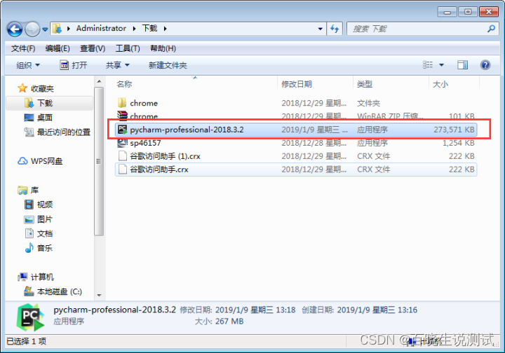 第一步:找到下载好的PyCharm安装包,如下图所示“