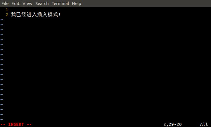 -- 输入文本,目的是让用户输入文本。进入插入模式之后,vim就进入输入状态;用户就能输入文本。