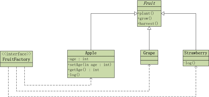 Product类是"Fruit"。Fruit代表水果,它是抽象类,包含水果的基本特征:生长,种植,收获。