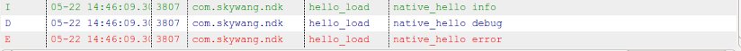 // 引入log头文件 #include <android/log.h> // log标签 #define TAG "hello_load" // 定义info信息 #define LOGI(...) __android_log_print(ANDROID_LOG_INFO,TAG,__VA_ARGS__) // 定义debug信息 #define LOGD(...) __android_log_print(ANDROID_LOG_DEBUG, TAG, __VA_ARGS__) // 定义error信息 #define LOGE(...) __android_log_print(ANDROID_LOG_ERROR,TAG,__VA_ARGS__)