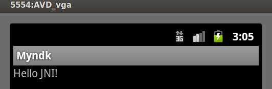 1 package com.skywang.ndk; 2 3 import android.app.Activity; 4 import android.os.Bundle; 5 import android.widget.TextView; 6 7 public class Myndk extends Activity { 8 9 @Override 10 public void onCreate(Bundle savedInstanceState) 11 { 12 super.onCreate(savedInstanceState); 13 14 TextView myTextView = new TextView(this); 15 myTextView.setText( HelloNdk() ); 16 setContentView(myTextView); 17 } 18 19 public native String HelloNdk(); 20 21 static { 22 System.loadLibrary("hello_jni"); 23 } 24 }
