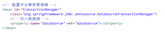 <bean id="transactionManager" class="org.springframework.jdbc.datasource.DataSourceTransactionManager">