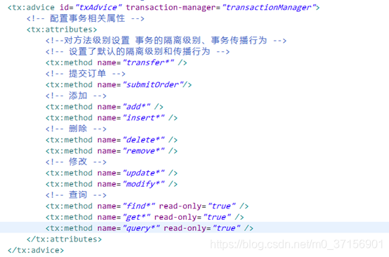 ***事务通知:<tx:advice id=”” transaction-manager=””/>