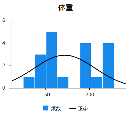 从图中可以看出数据大致呈现出中间高、两侧低、左右基本对称的“钟形”分布曲线。所以体重大致符合正态分布。接下来查看数据是否满足方差齐性。