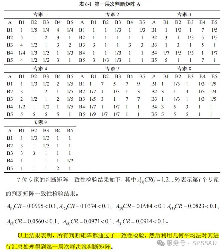 【提示】:多个专家打分时,一般通过几何平均法合并判断矩阵,例如本篇论文说明如下: