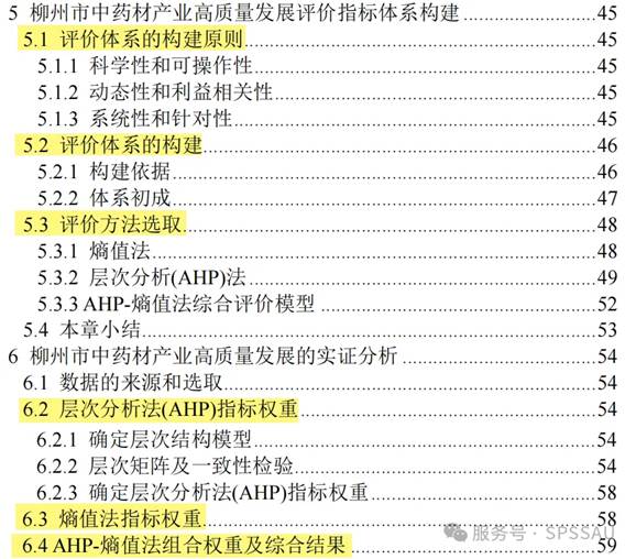 本文以知网收录的一篇研究—柳州市中药材产业高质量发展为案例,演示评价指标体系的构建流程,以及如何采用 AHP—熵值法进行组合赋权。部分目录如下所示: