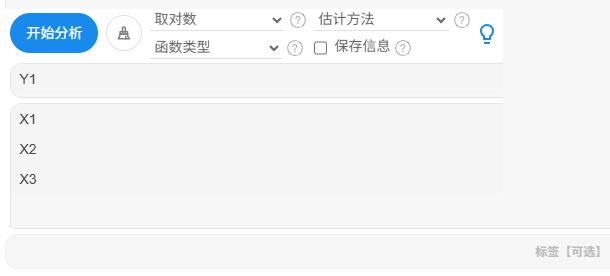 研究人员可自行下拉设置,默认是针对X和Y均取对数。以及取对数处理时,如果某列数据出现小于0则无法取对数,SPSSAU会自动进行‘非负平移’处理,即以该列为单位,均加上最小负数值的绝对数并且加上0.01,保证数据全部均大于0前提时再进行取对数处理。 - 关于‘估计方法’
