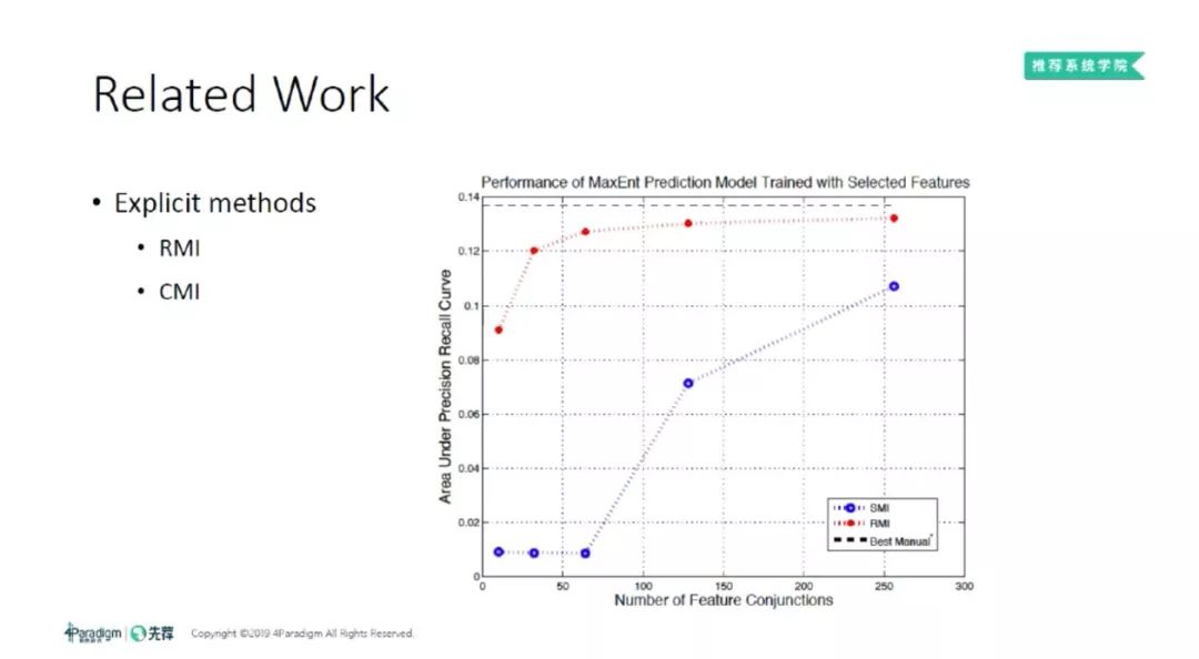 显式的特征组合有两个代表性工作,分别是RMI [2]和CMI [3]。其中字母“MI”代表互信息(Mutual Information),是一个经典的特征选择的方法。