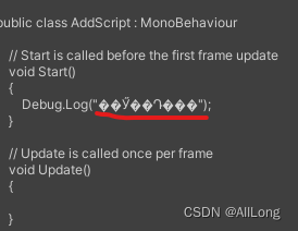使用VS编辑的代码里面有中文,在Unity里面预览的时候中文会显示乱码