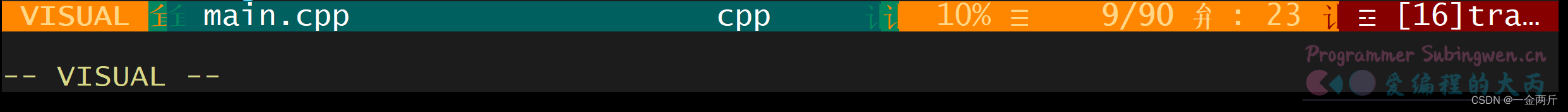 通过 v 切换到字符可视模式之后, 在窗口的最下方会看到 -- VISUAL-- 字样。