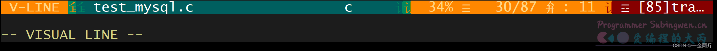 通过 V 切换到行可视模式之后, 在窗口的最下方会看到 -- VISUAL LINE -- 字样。