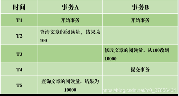 不可重复性:事务A中先后两次读取同一个数据,但是两次读取的结果不一样。脏读与不可重复读的区别在于:前者读到的是其他事务未提交的数据,后者读到的是其他事务已提交的数据。