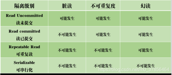 根据上面这三种问题,产生了四种隔离级别,表明数据库不同程度的隔离性质。