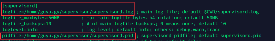 找到[supervisord]开头的部分,修改logfile和pidfile后面的路径