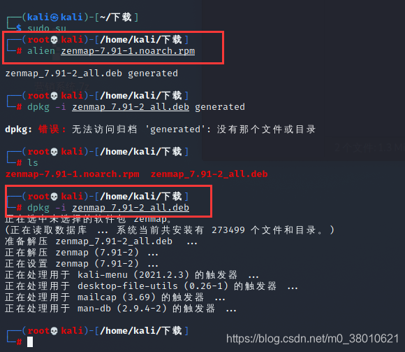 在nmap官网下载rpm安装包,然后使用alien工具转换成deb安装包,然后在使用dpkg进行安装,具体步骤如下: