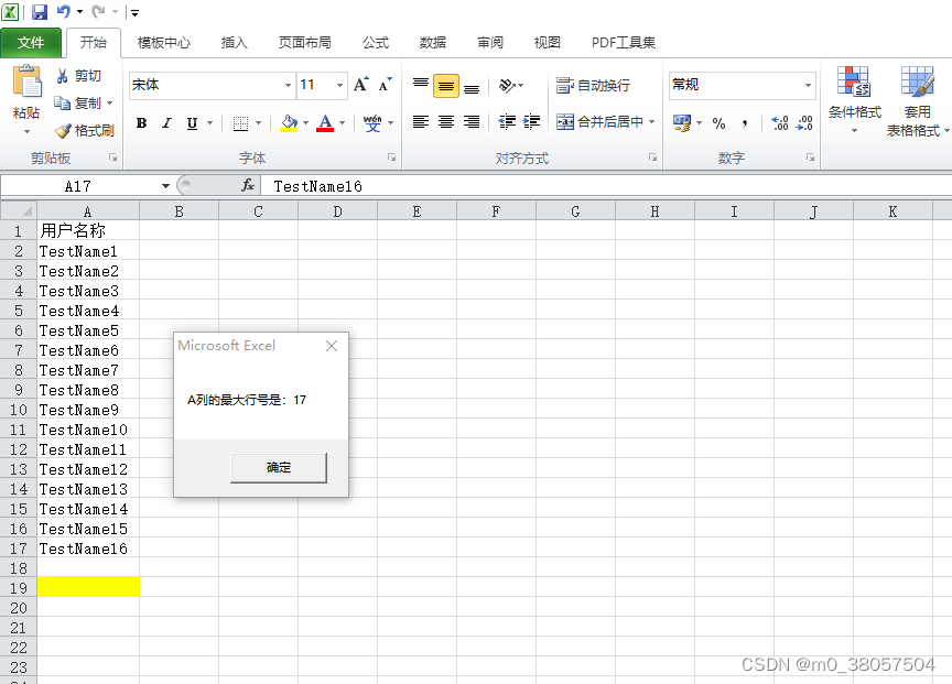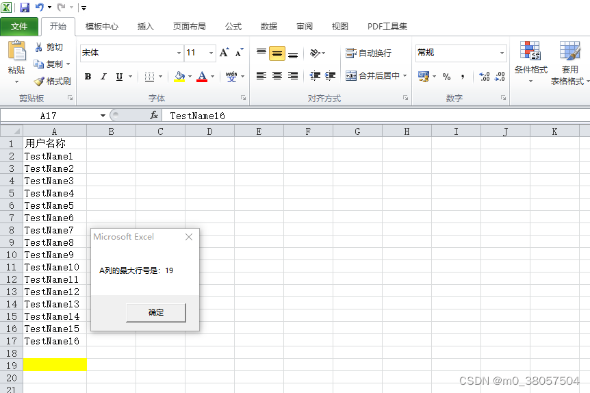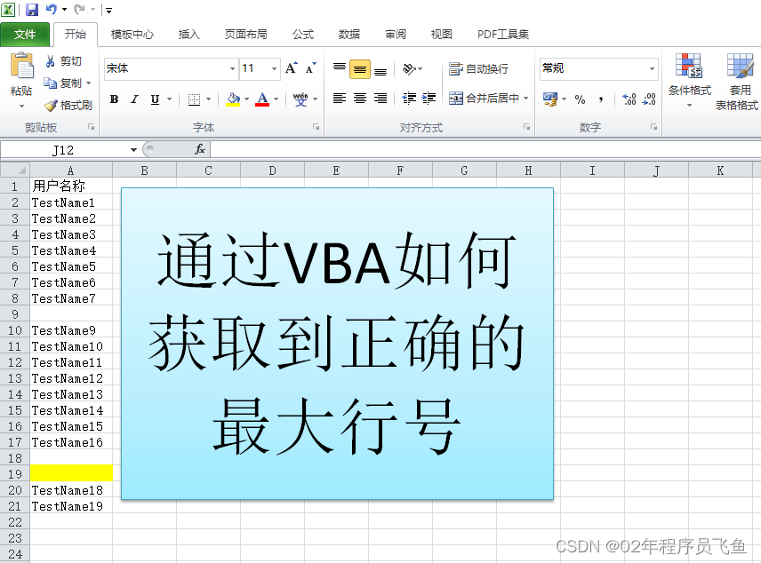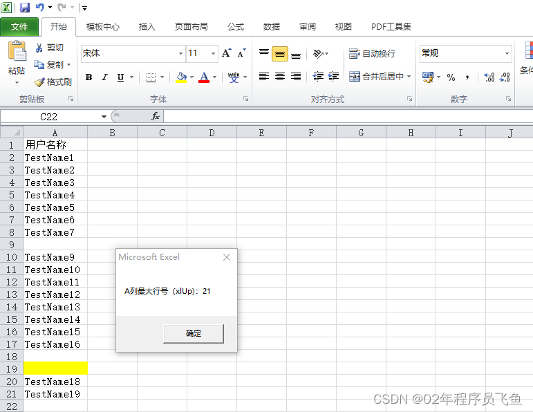 请大家注意看,我最后一行只是填充了背景色,并没有输入任何值,这个方法会认为这个单元格是非空单元格。所以获取到的最大行号是19。