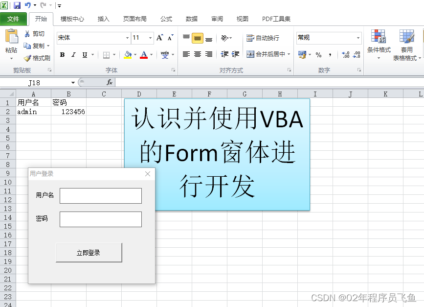 我们今天就用VBA的Form窗体来做一个简单的用户登录界面。