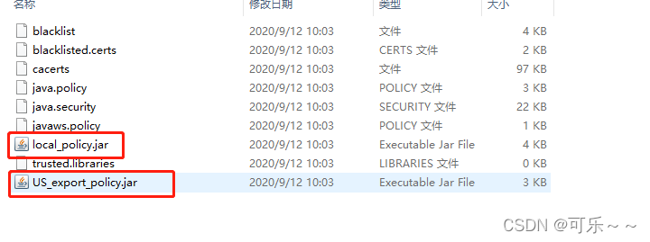 在这个版本之前的djk需要替换$JAVA_HOME/jre/lib/security目录下的权限文件,下载好文件之后直接替换文件即可,如下图。