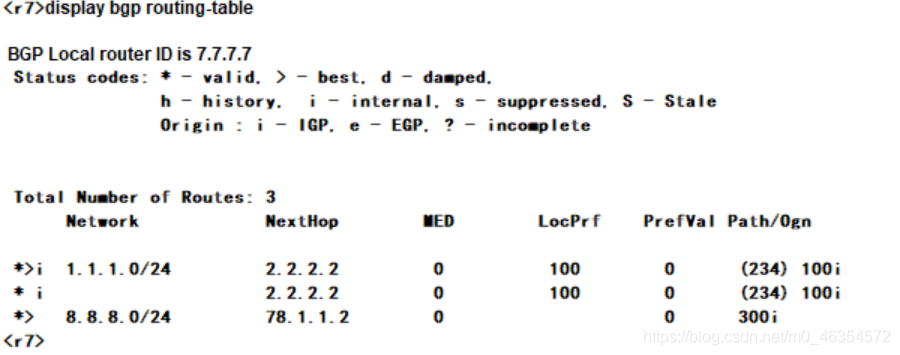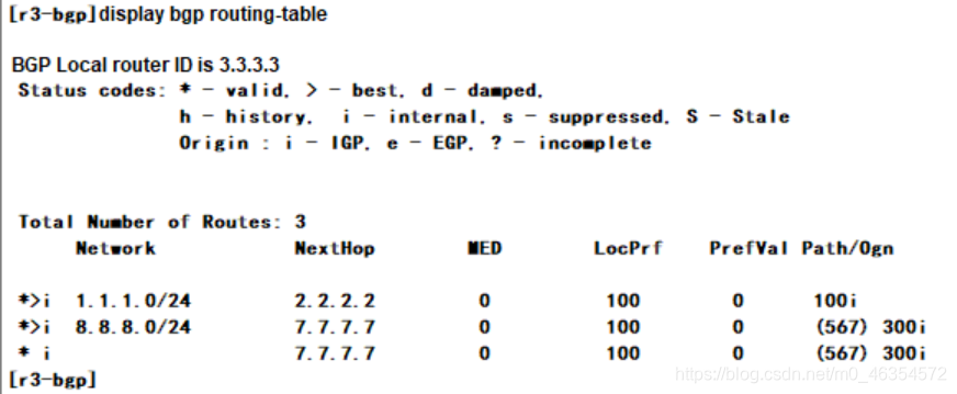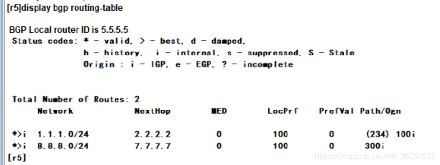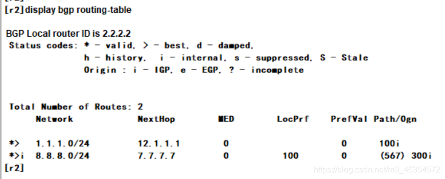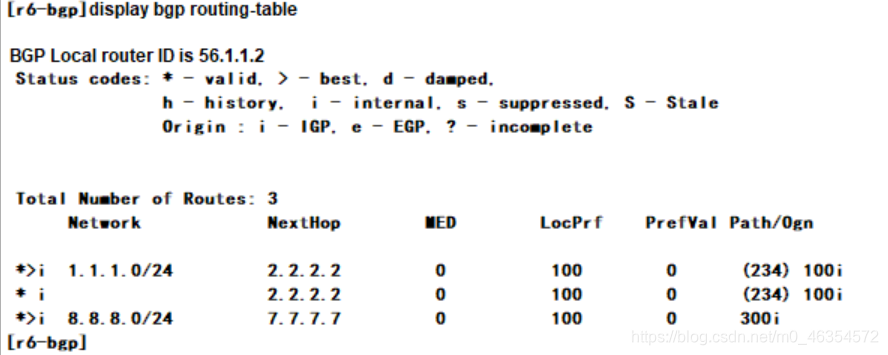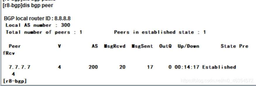 查看bgp路由表: